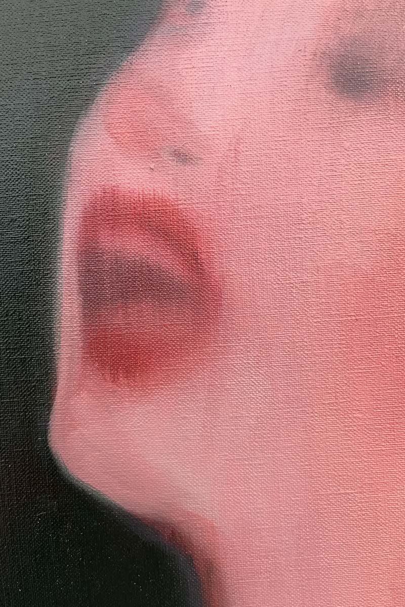 La peinture suspend le temps : le visage semble émerger d’un rêve, les contours se dissolvent dans une lumière incertaine. Derrière la douceur apparente, l’artiste interroge la fabrication du mythe et la fragilité des idéaux que nous continuons d’habiter sans les questionner.